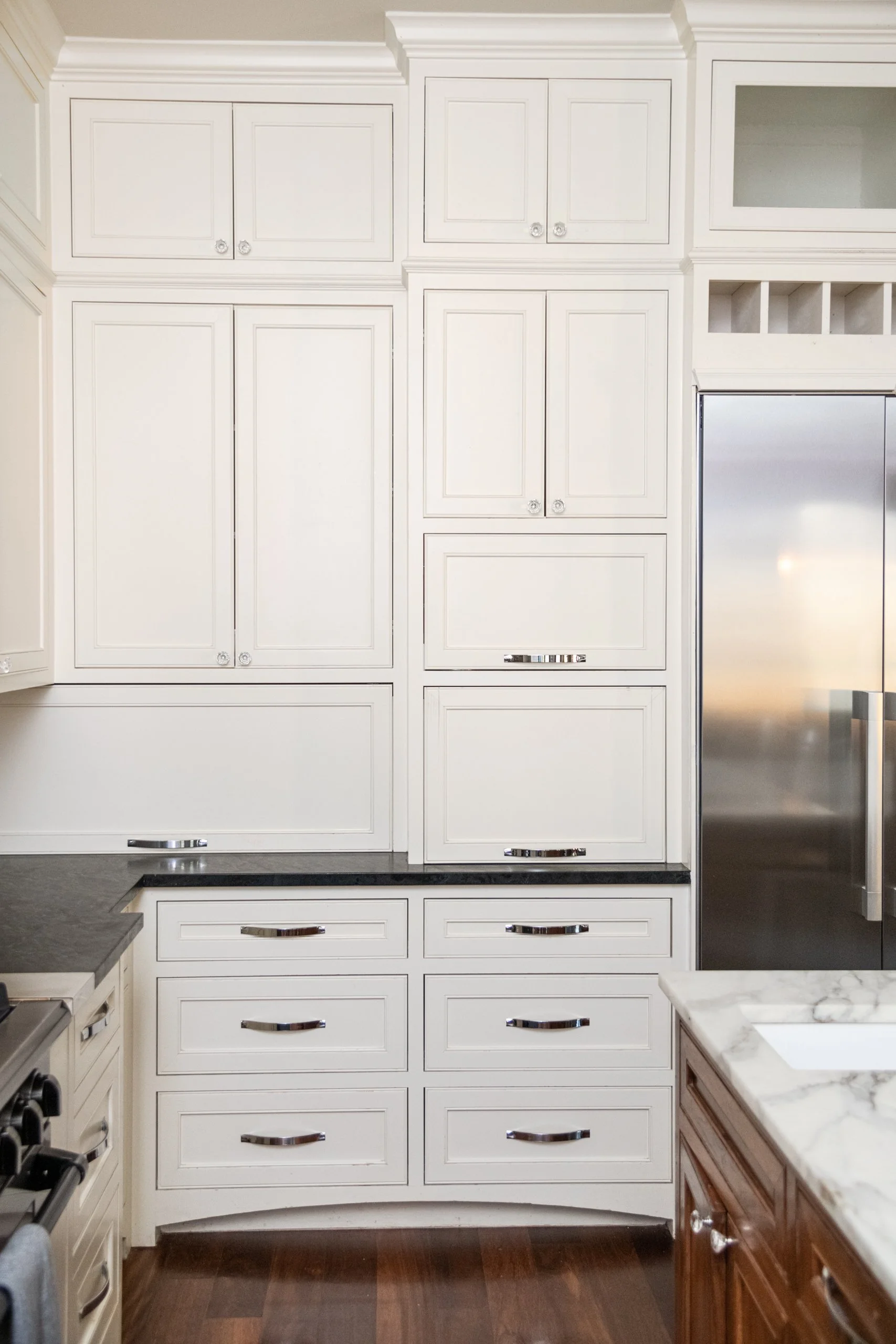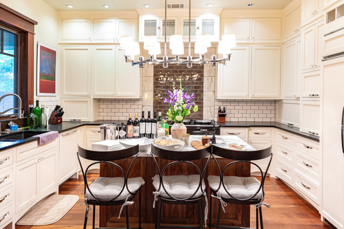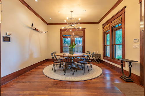This kitchen will become the de facto gathering space for your group. The modern kitchen has two large sinks, four ovens, a state-of-the-art gas stovetop, and a massive refrigerator to hold all your food and beverages. Whether you cook here or eat out, the large inviting space is welcoming to all.