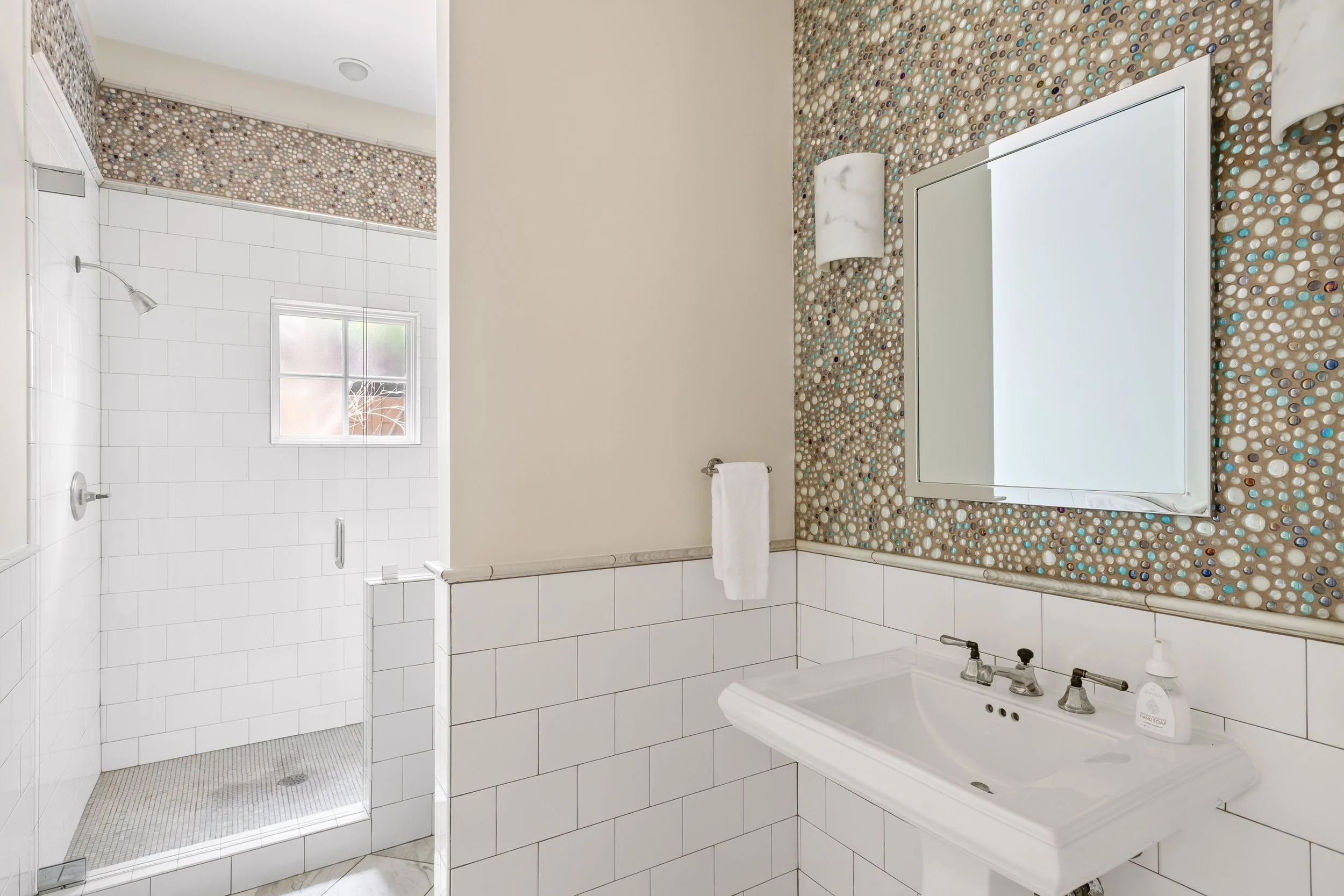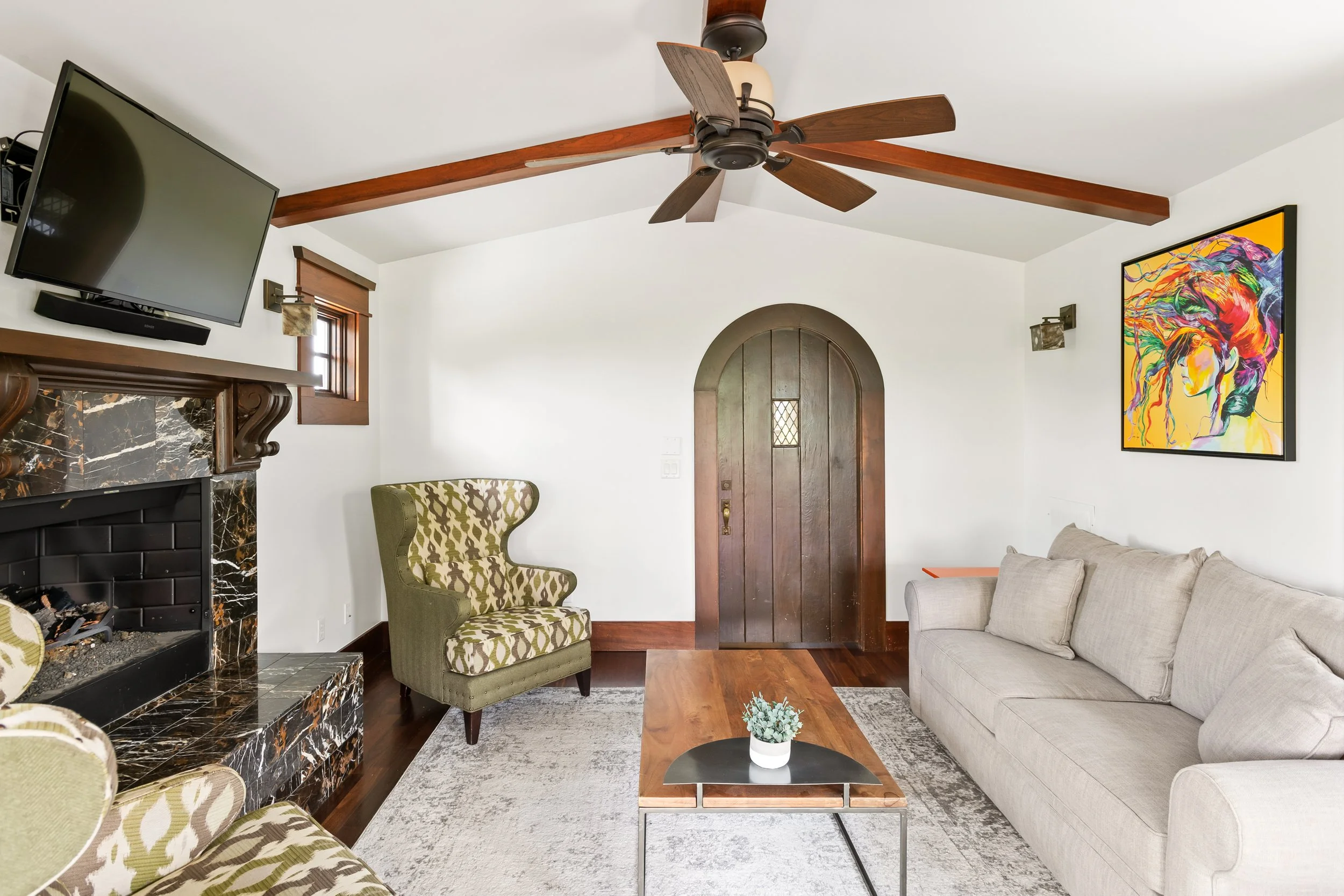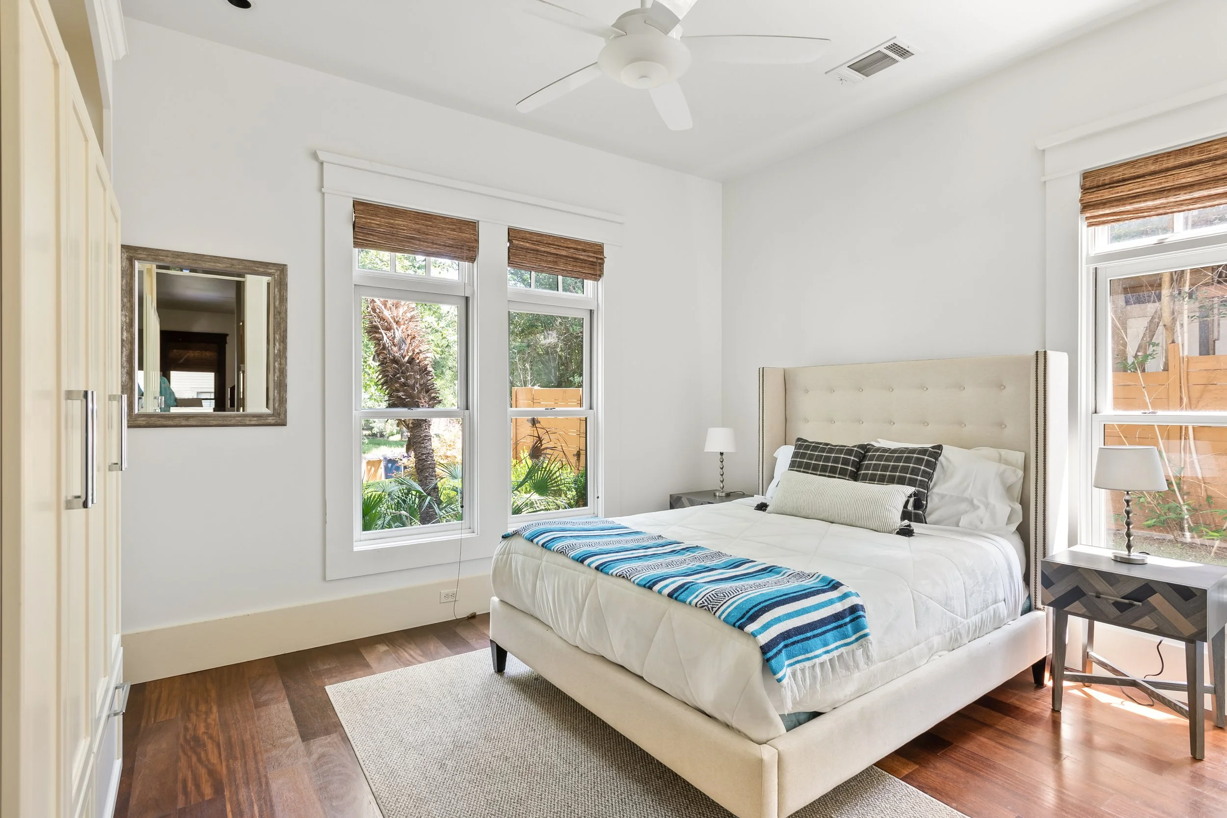 We pride ourselves on our premium hospitality amenities: shampoo, soaps, paper products, and hotel-quality linens and towels. The house has an in-unit washer and dryer, as well as central AC/heat. We also have a SONOS sound system connected through an iPad touch display, high-speed WiFi, cable TV, and four security cameras.